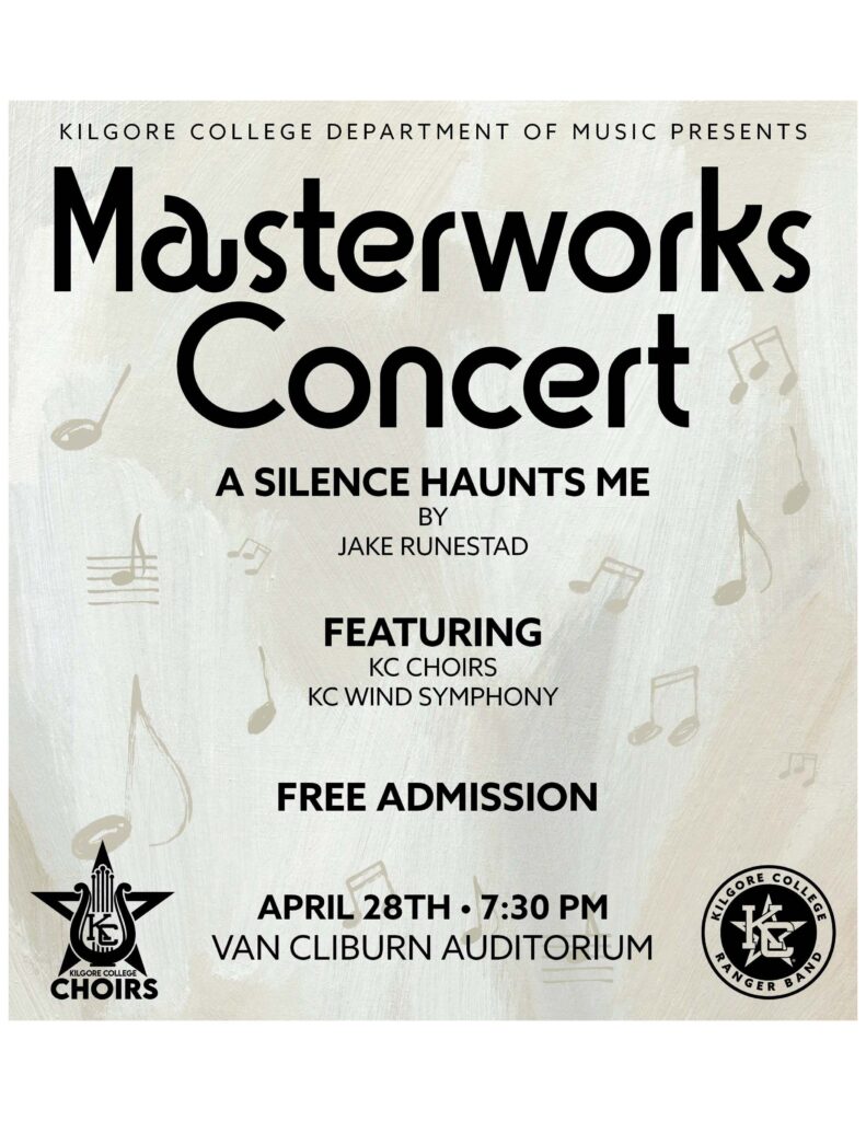 The Kilgore College Department of Music will present its annual Masterworks Concert at 7:30 p.m. Tuesday, April 28, in Van Cliburn Auditorium.