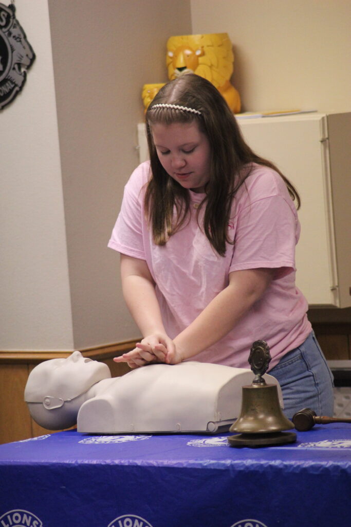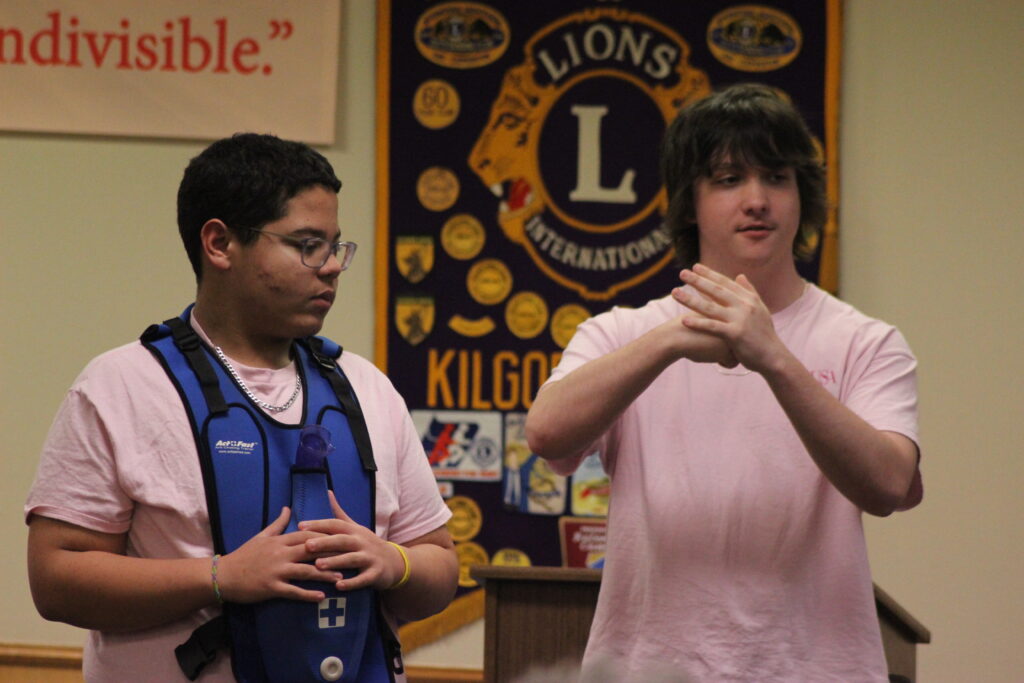 For CPR, the best beat is the Bee Gees “Stayin’ Alive,” the youngsters reminded Kilgore Lions Club members last week during their presentation on everything from how to perform chest compressions on adults, children and infants to using an Automated External Defibrillator or performing the Heimlich maneuver.